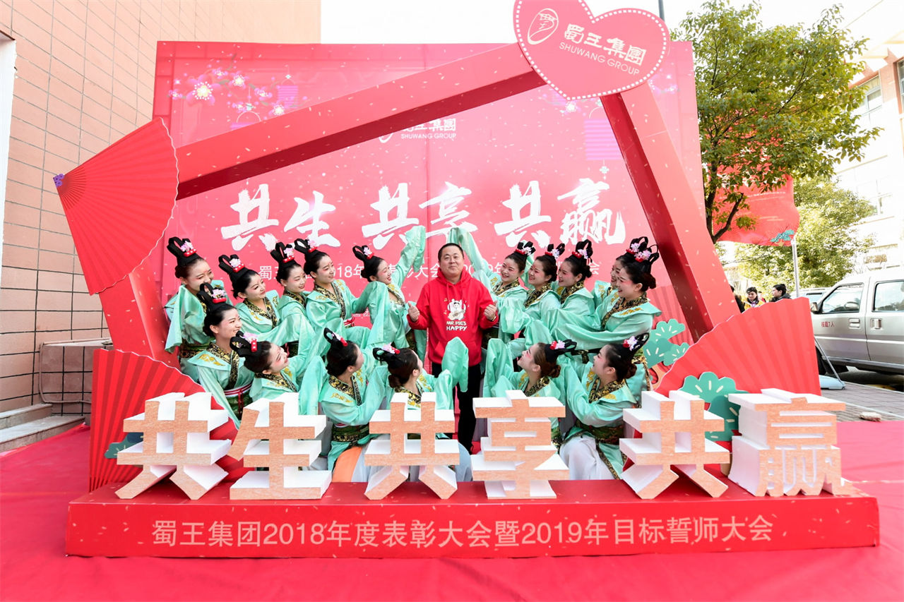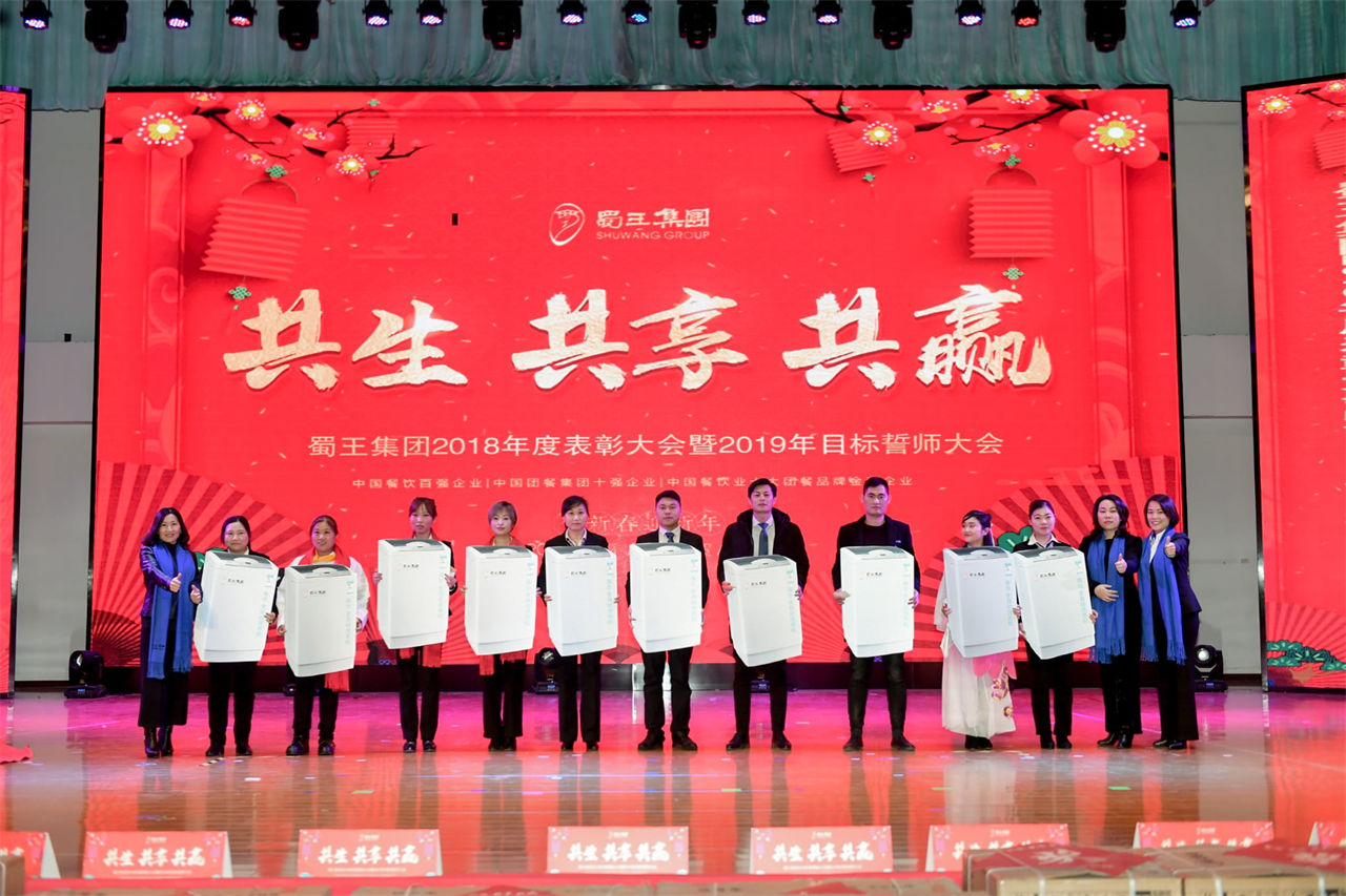 2019年1月26日,蜀王集团“共生 共享 共赢”2018年度表彰大会暨2019年目标誓师大会成功举办。现场歌舞助兴、表彰优秀,为蜀王家人呈现一场年度“企业文化盛宴”。